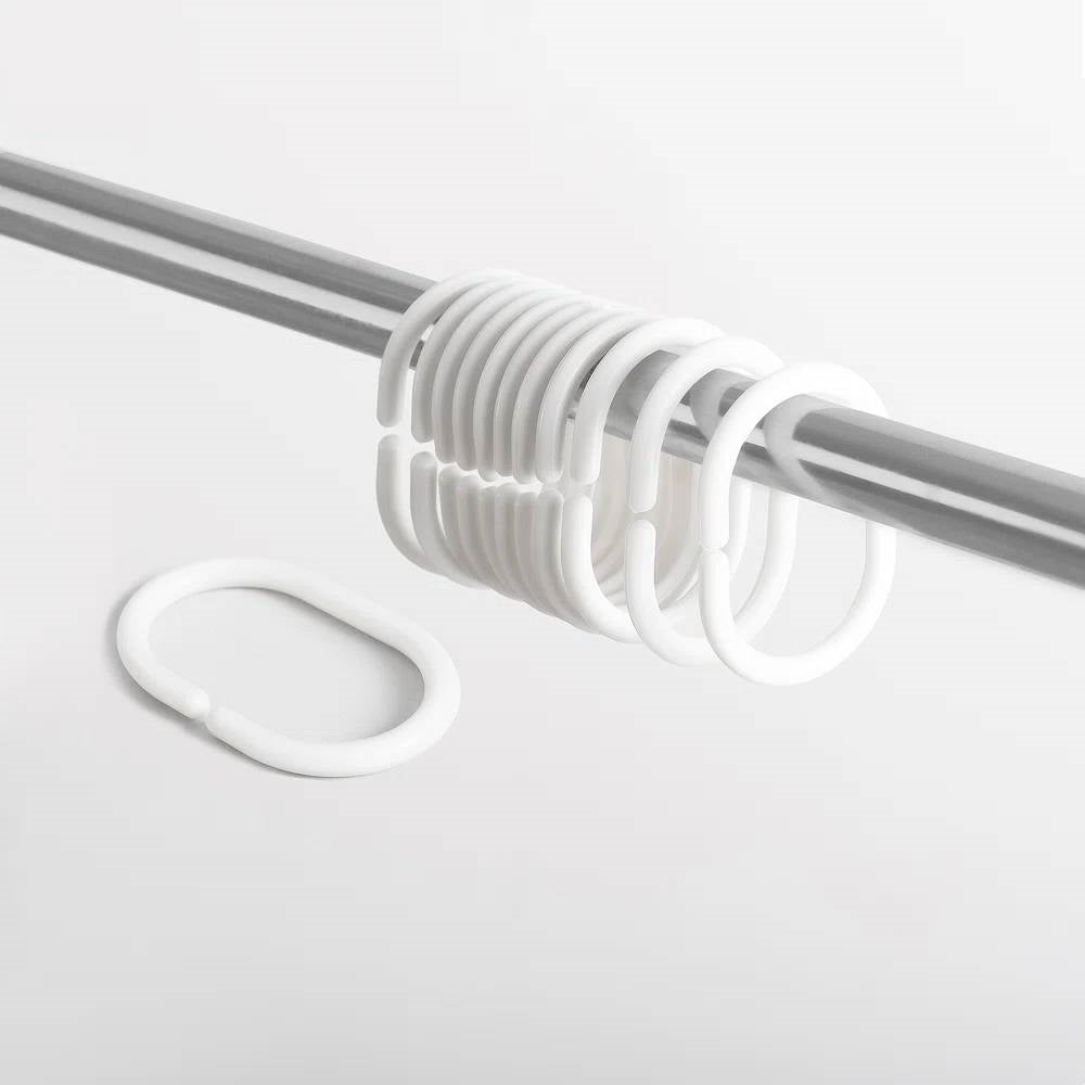 - Set includes 1 shower curtain, 12 plastic rings, and 1 mini tote