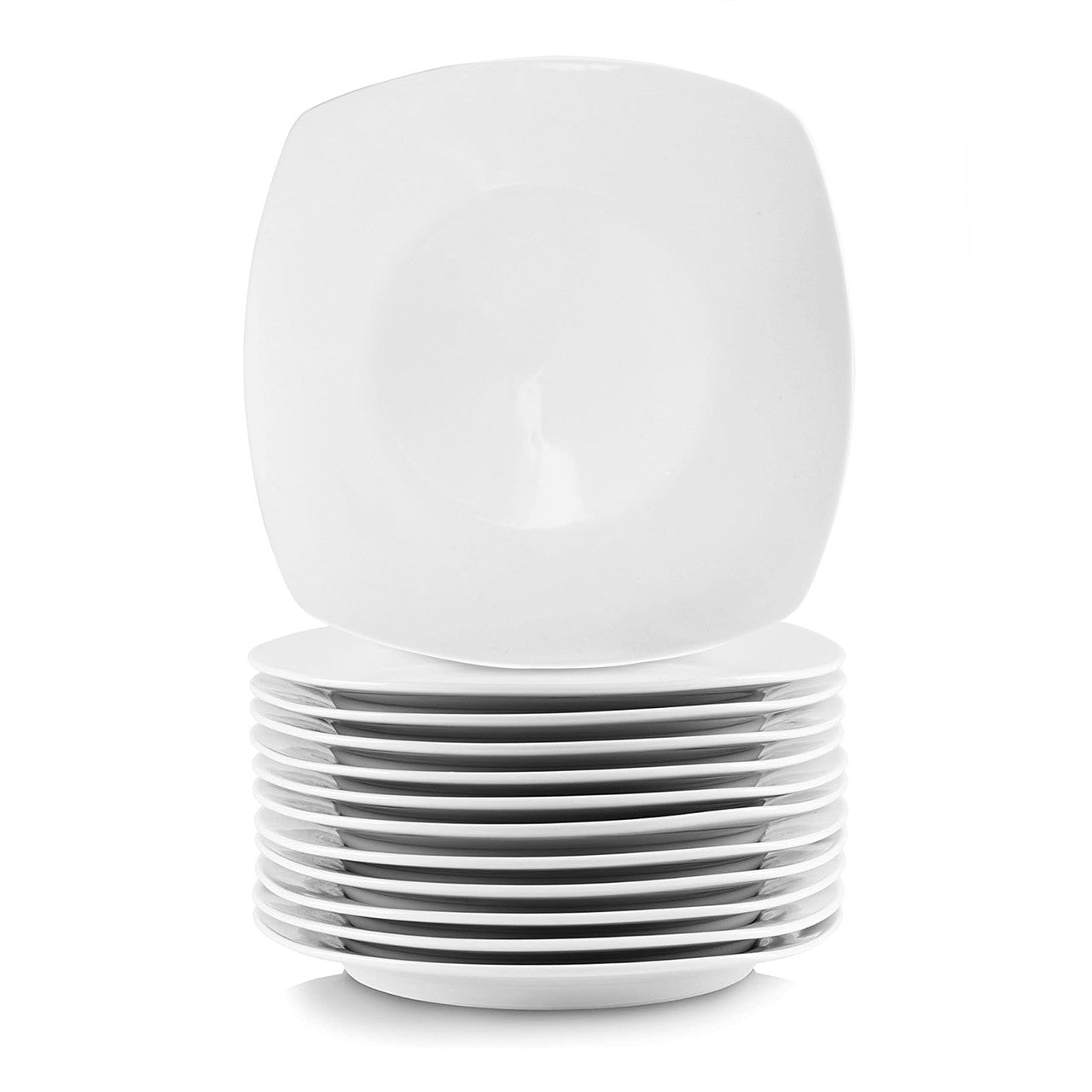 Elama 12 Piece Square Porcelain Large Dinner Plates in White